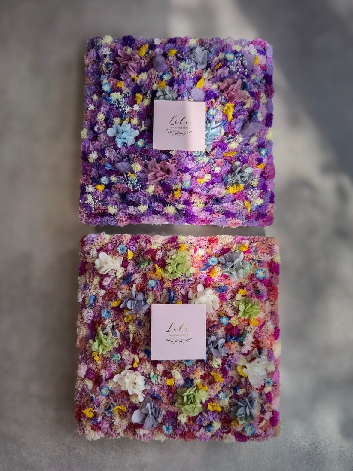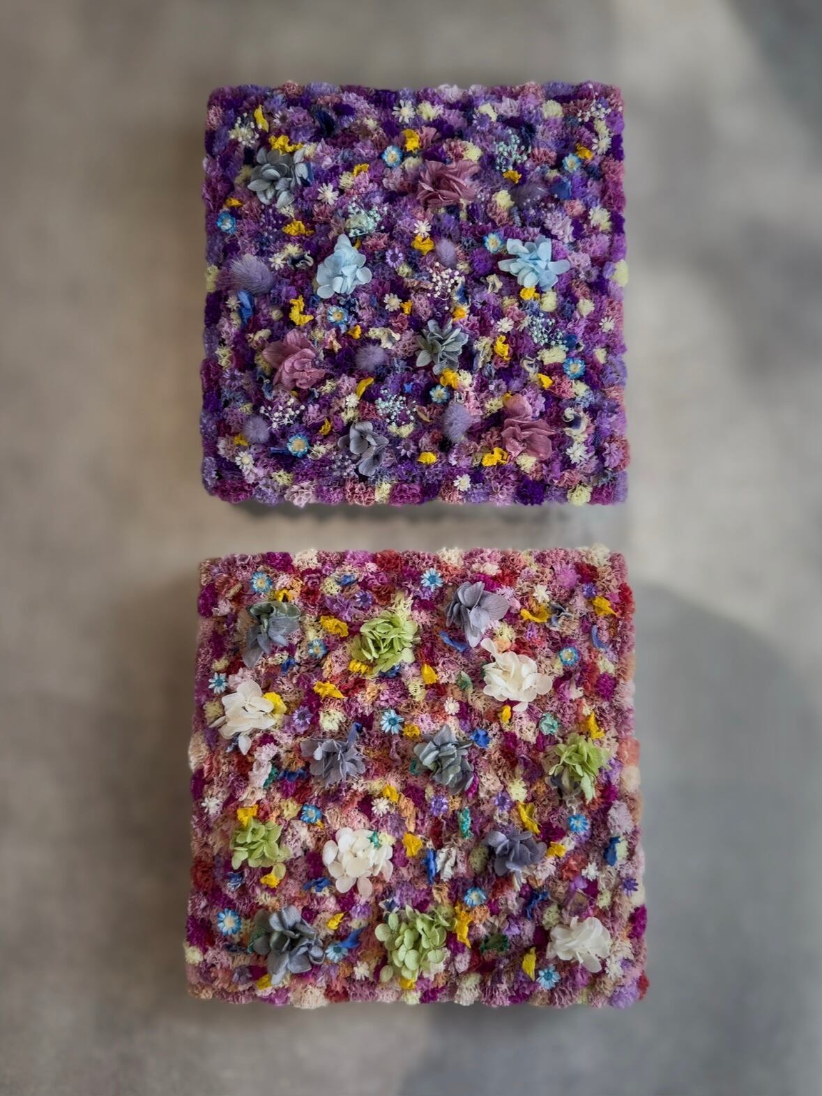 キャンバスフラワー2個セット (ピンクsikaku 20×20cm) (パープルsikaku 20×20cm)