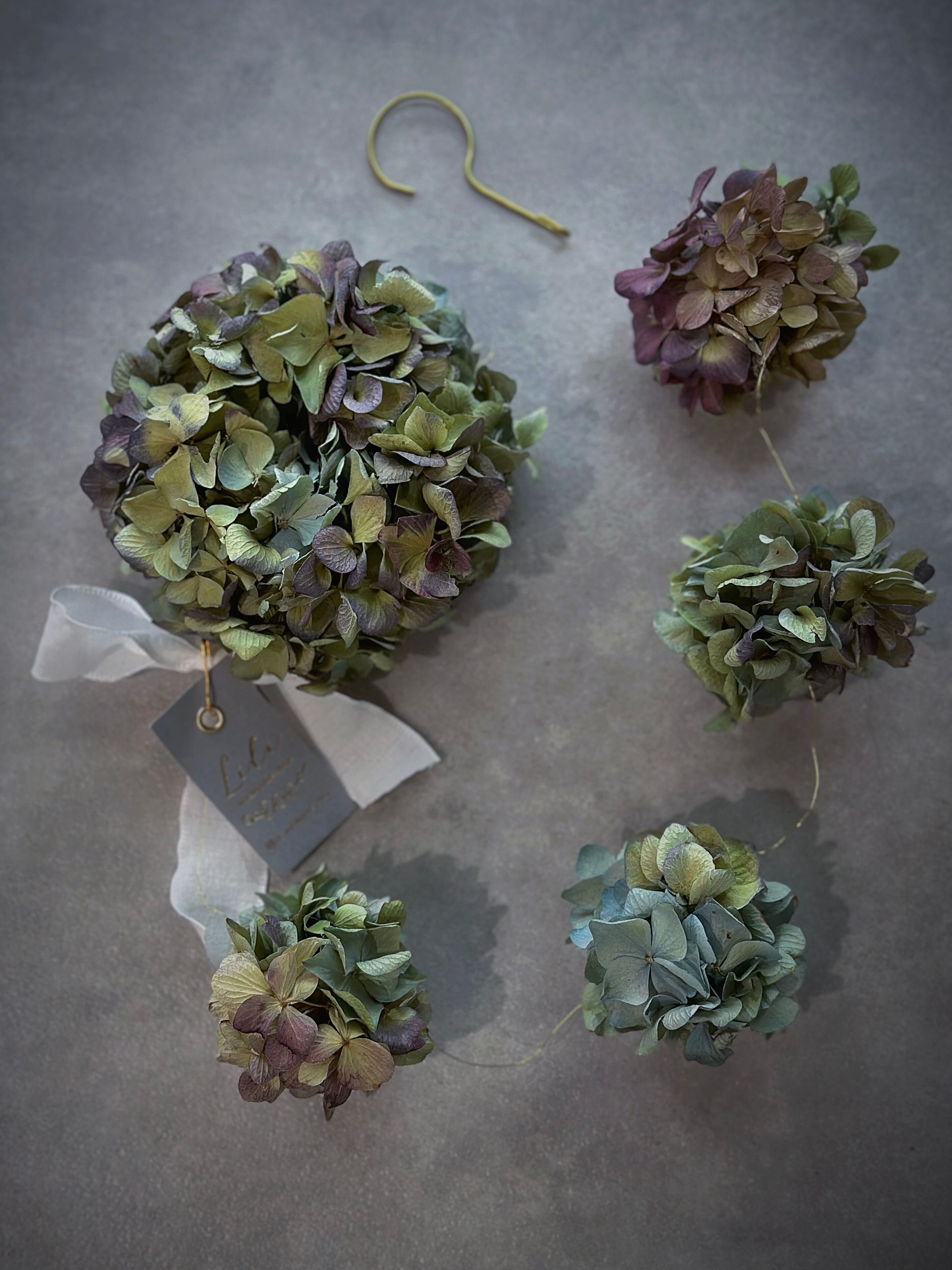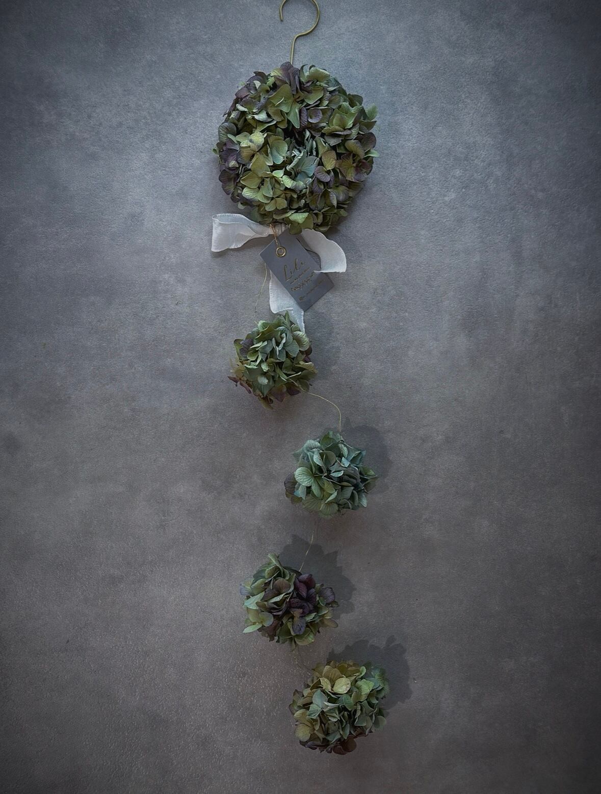 ✔miniフルリースのフラワーモビール (リース12cm、上から下まで55cm程) ミニサイズのフルリースにコロンと丸いモビールが付いています♡