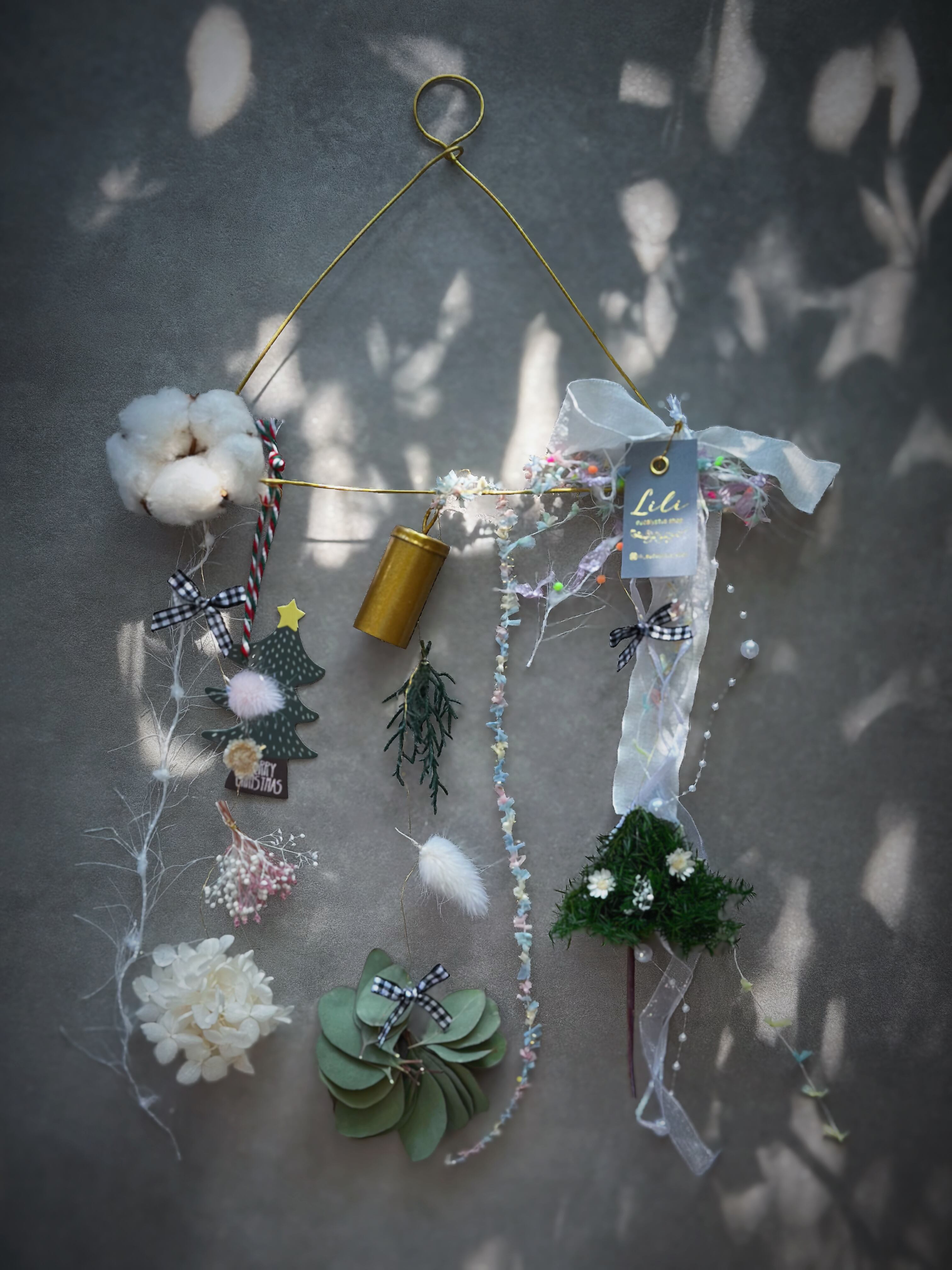 ✔ガーランド (40×25cm程) ユラユラ可愛いこの時期にピッタリのガーランド♡ ユーカリ以外は全てプリザーブドフラワーで制作しておりますので長い期間楽しんでいただけます♡