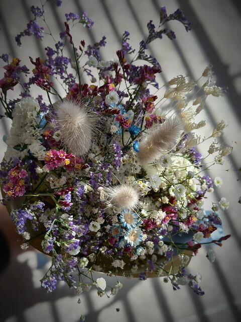 ※ドライフラワーは時間とともに少しずつ色味や質感が変化していきます。半年から1年ほどかけて移りゆく風合いも、自然素材ならではの魅力としてお楽しみいただけましたら嬉しいです⋆*