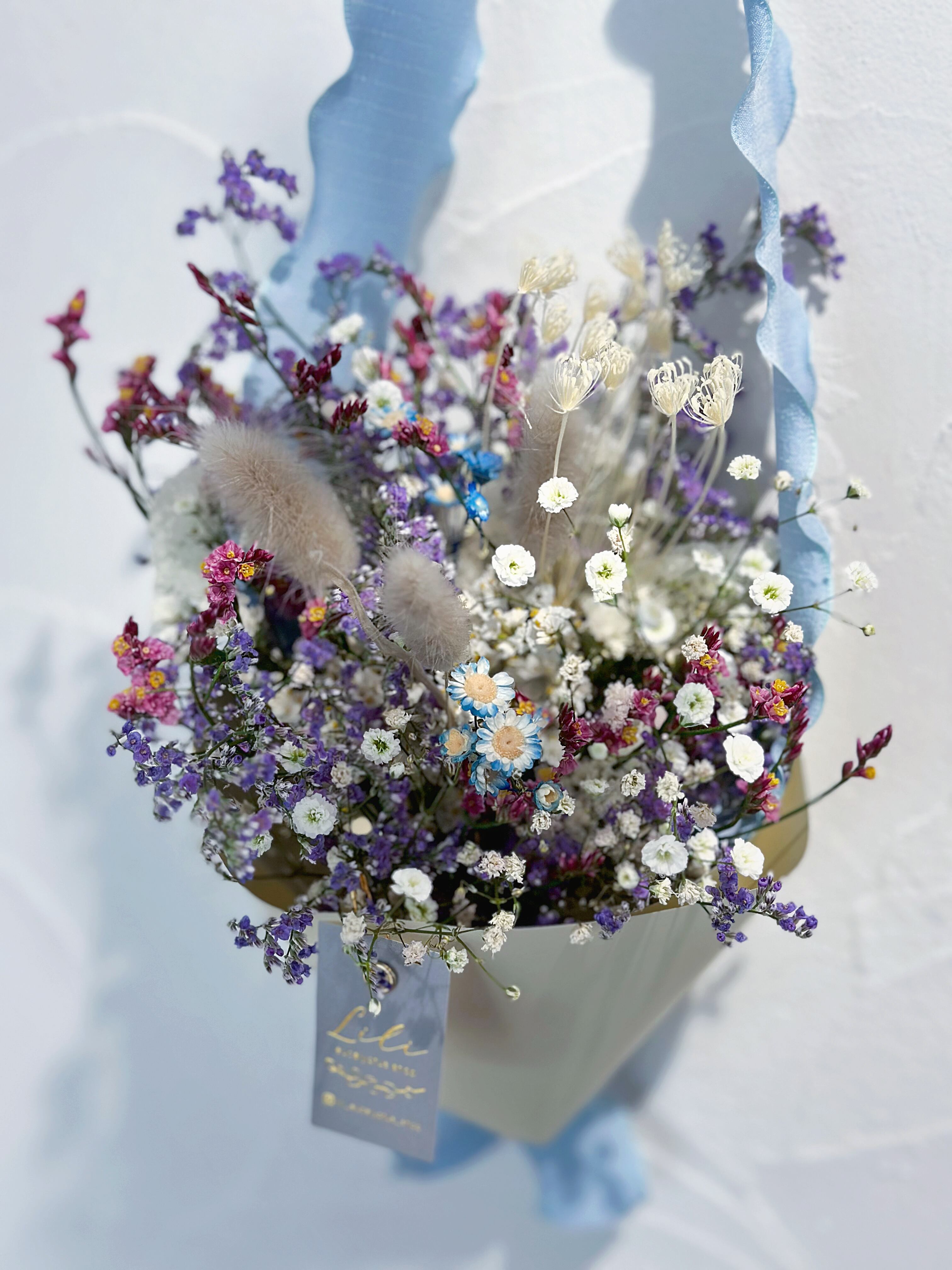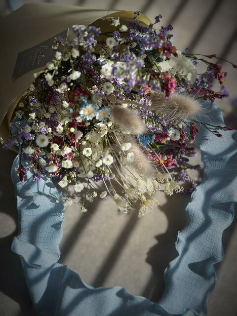 ※ドライフラワーは湿気や直射日光に弱いため、お受け取り後は速やかに開封し、風通しの良い場所での保管をお願いいたします。お客様のご都合によるお受け取りの遅延や、保管状況による品質の変化については、保証の対象外となりますことをご了承ください。