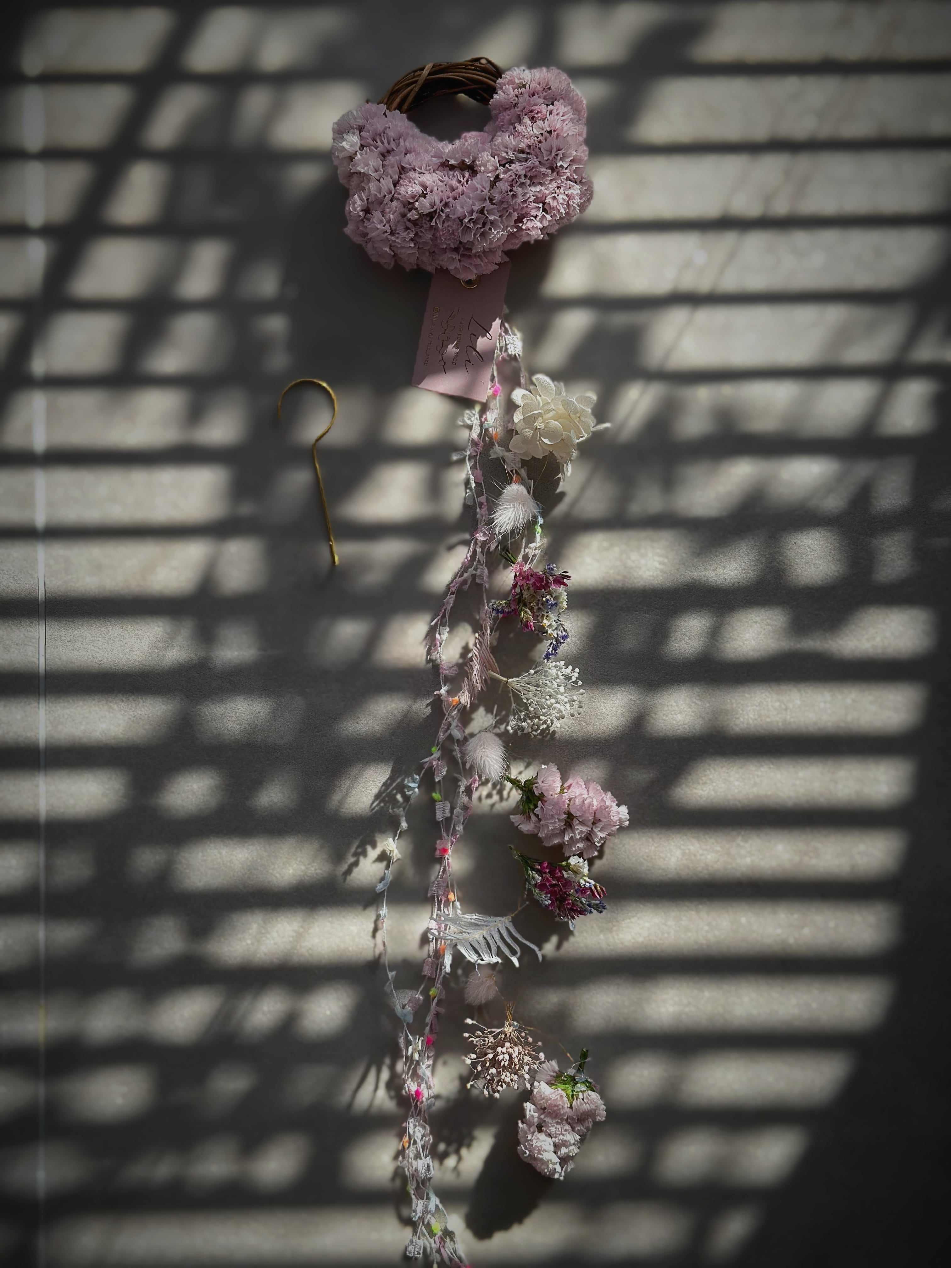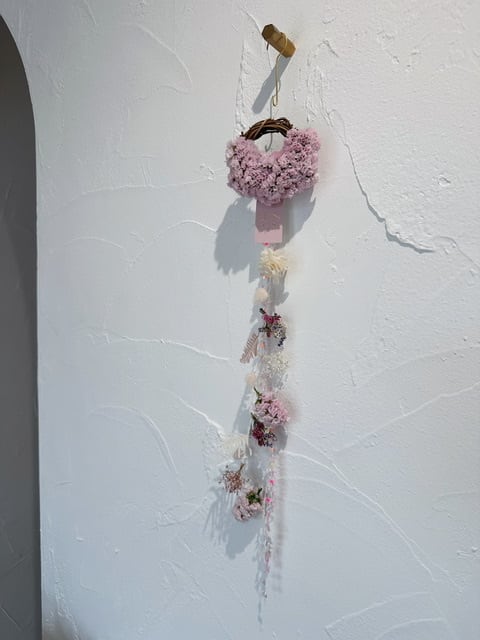 ✔ miniリースのフラワーモビール (リース直径 約10cm/全長 約50cm) 真鍮フック付き こちら小さいながらもグルーガンで丁寧に制作しております♡ 春を感じる淡い色合いを、 ぜひお部屋に取り入れていただけたら嬉しいです♡