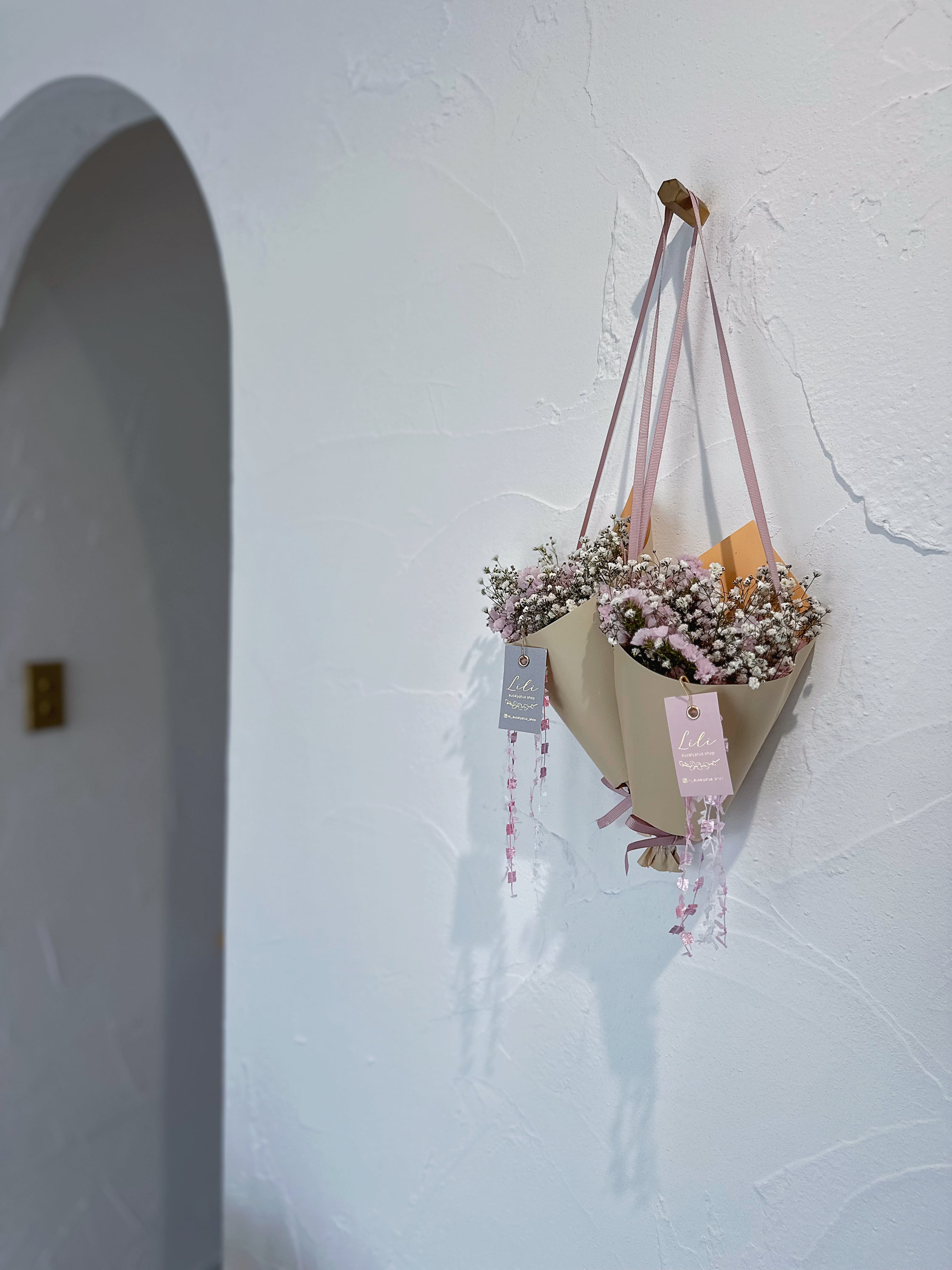 ※ フラワーバッグ1点あたりの価格です。 写真には2点写っていますが、販売価格は1点分となります。 ※在庫数は「残り〇点」と表示しています。 ━━━━━━━━━━━━━━━ ✔ フラワーバッグ (ブーケ 約23cm/吊るした状態で 約45cm) 春を感じる淡い色合いを、 ぜひお部屋に取り入れていただけたら嬉しいです♡