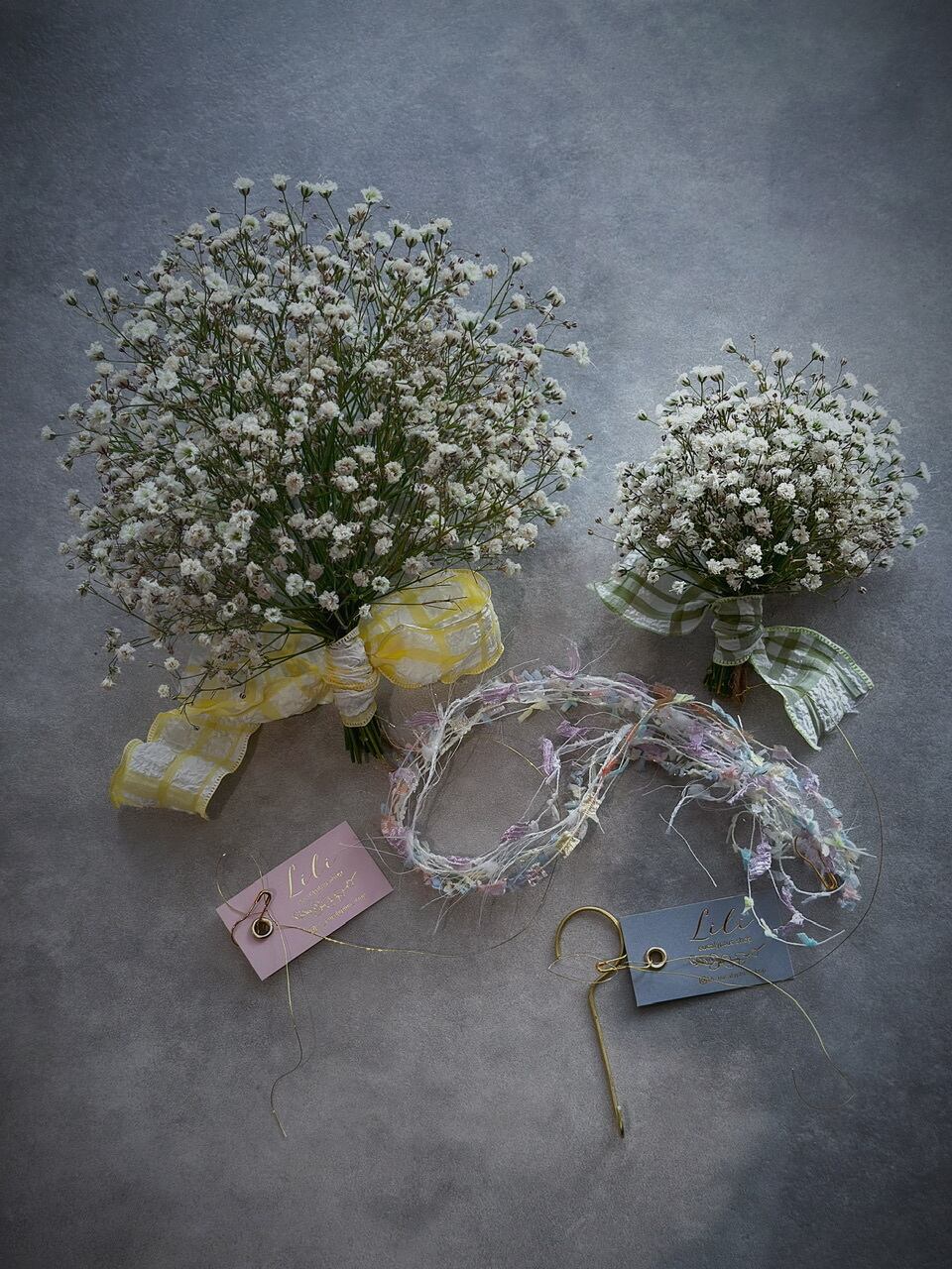 ✔フライングブーケ 2個set (ブーケ20cm、13cm程) ドライ済みなので、このままボリューム変わらず飾って頂けます♡