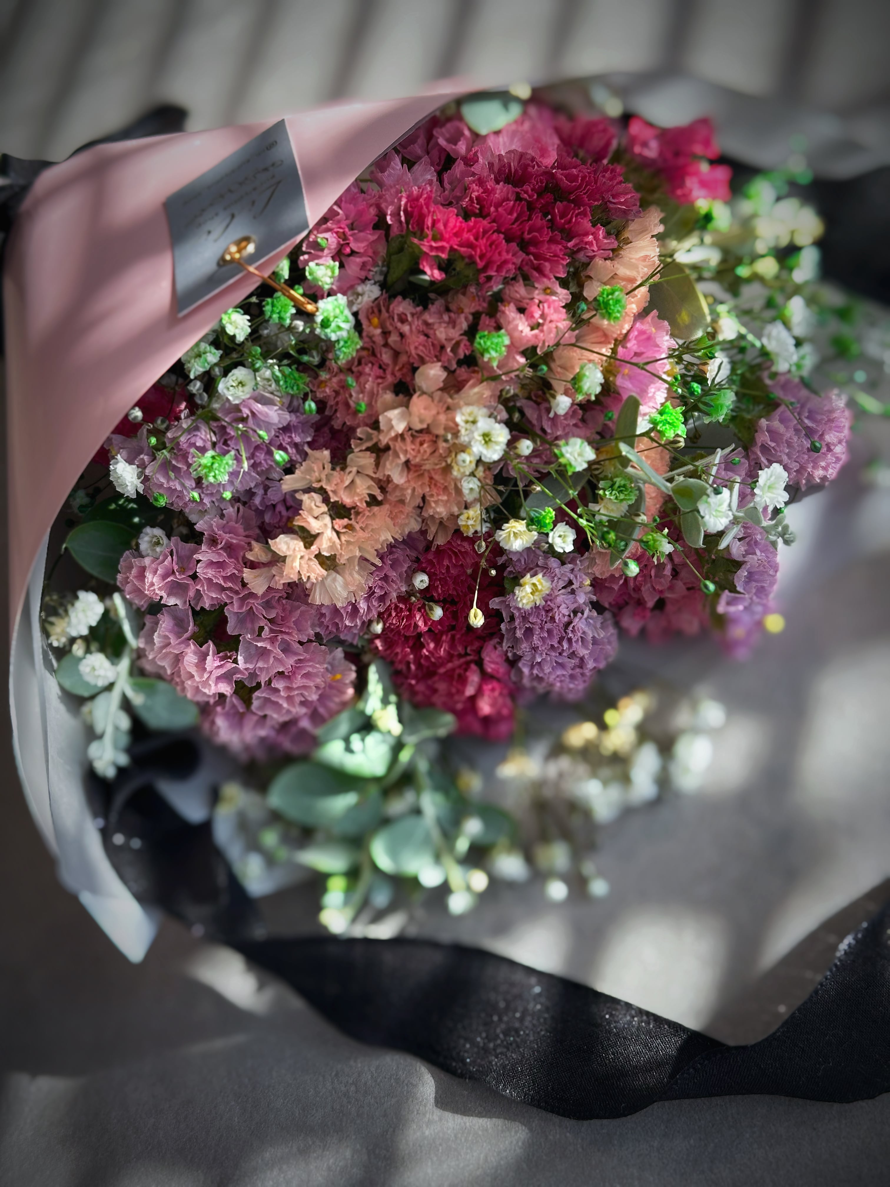 ⁡パールアカシア蕾、ニュアンスチース、カラーかすみ草