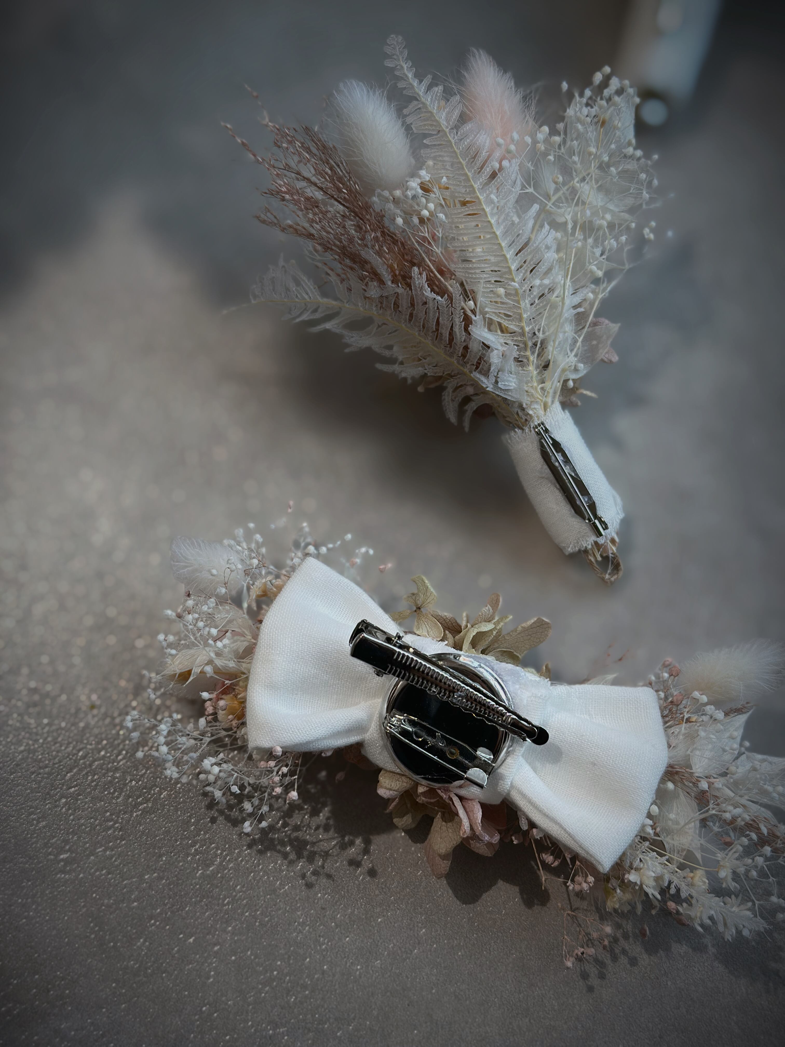 ※ミニブーケの裏は、もともとピンを付けていませんでしたが、ポケットがない場合でも色々なところに付けられるよう、後付けでピンを付けました。