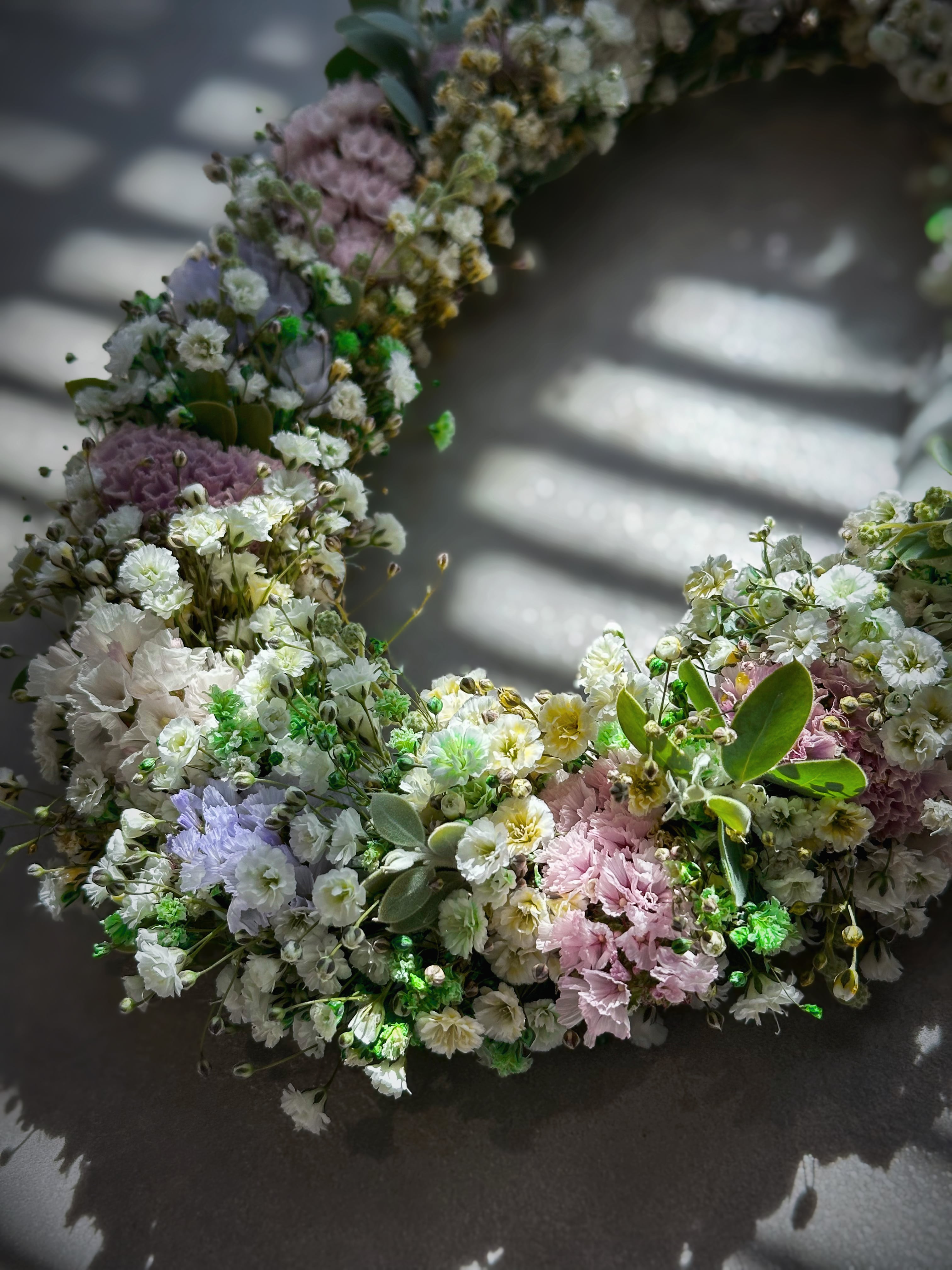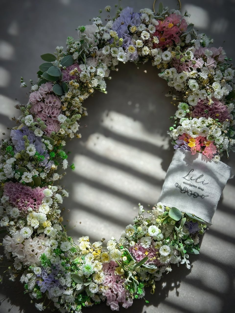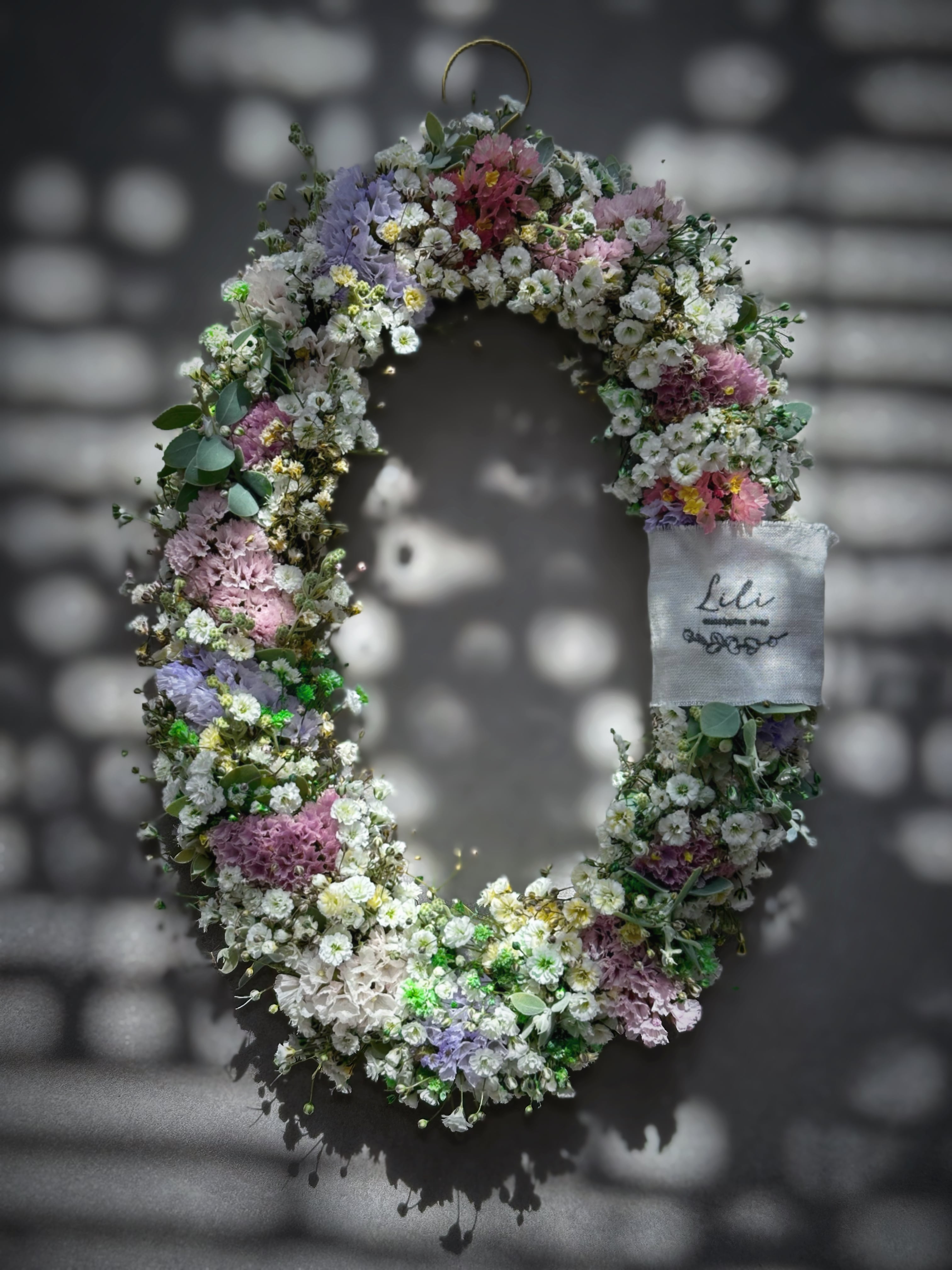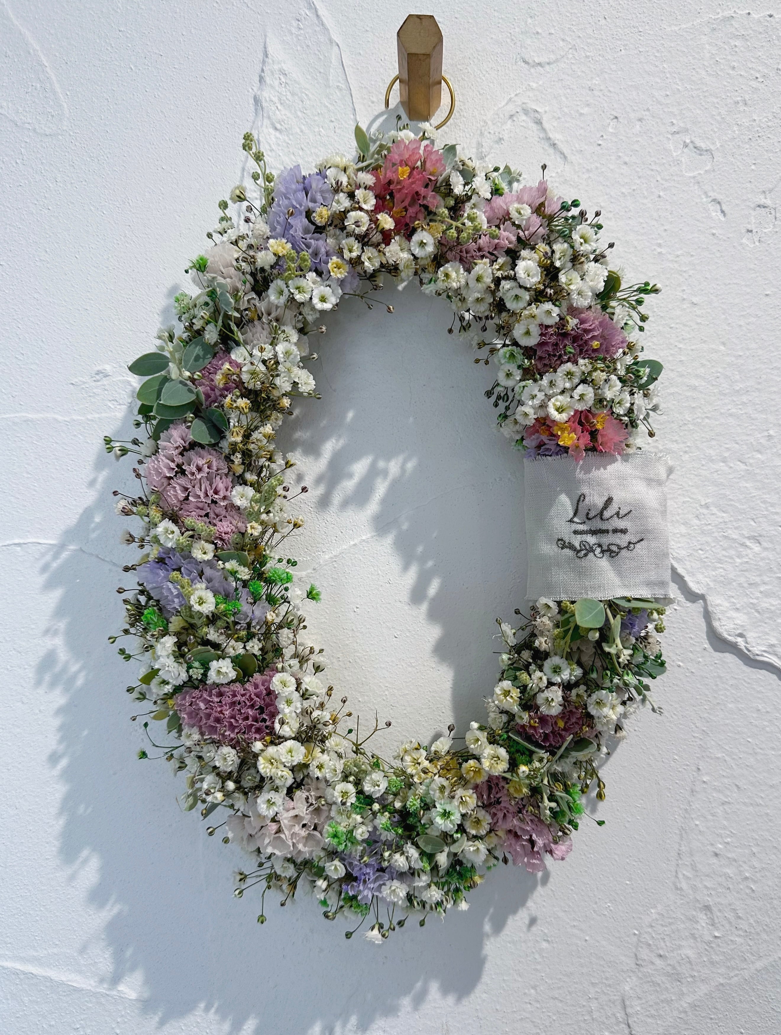 ✔ オーバルリース (大きめサイズ♡ 約28cm×18cm) 時間とともにだんだんドライへと変化していく、壁掛けリースです♡ ドライになると、華奢なラインがより引き立つように♡ それでいて、物足りなさを感じさせないボリューム感に♡ バランスを大切にしながら束ねています お部屋に、春の彩りをぜひ ※こちらギフトBOXには入らない大きさになりますので、オプションからギフトBOXは選べません。通常通りのダンボール発送になります。