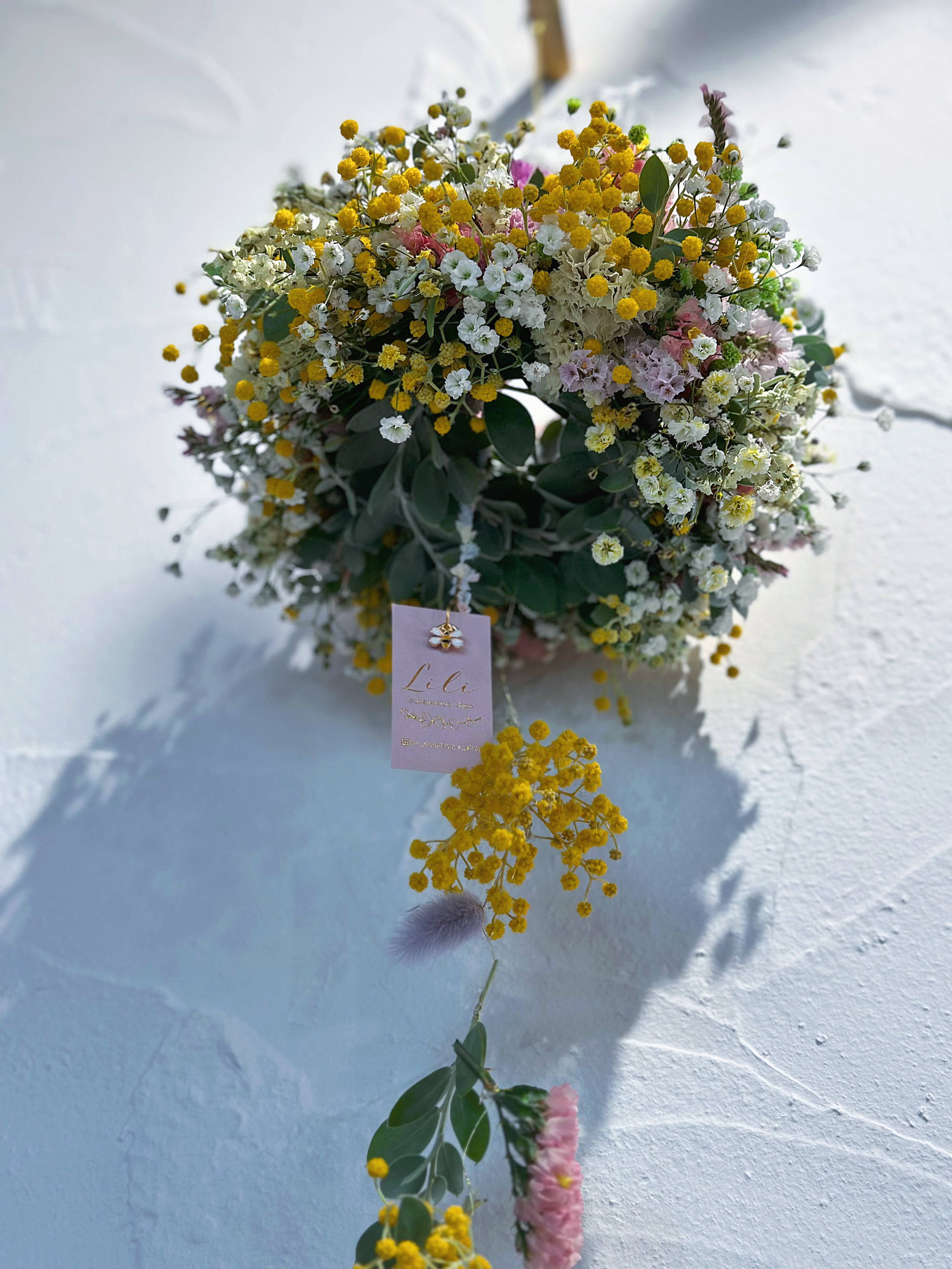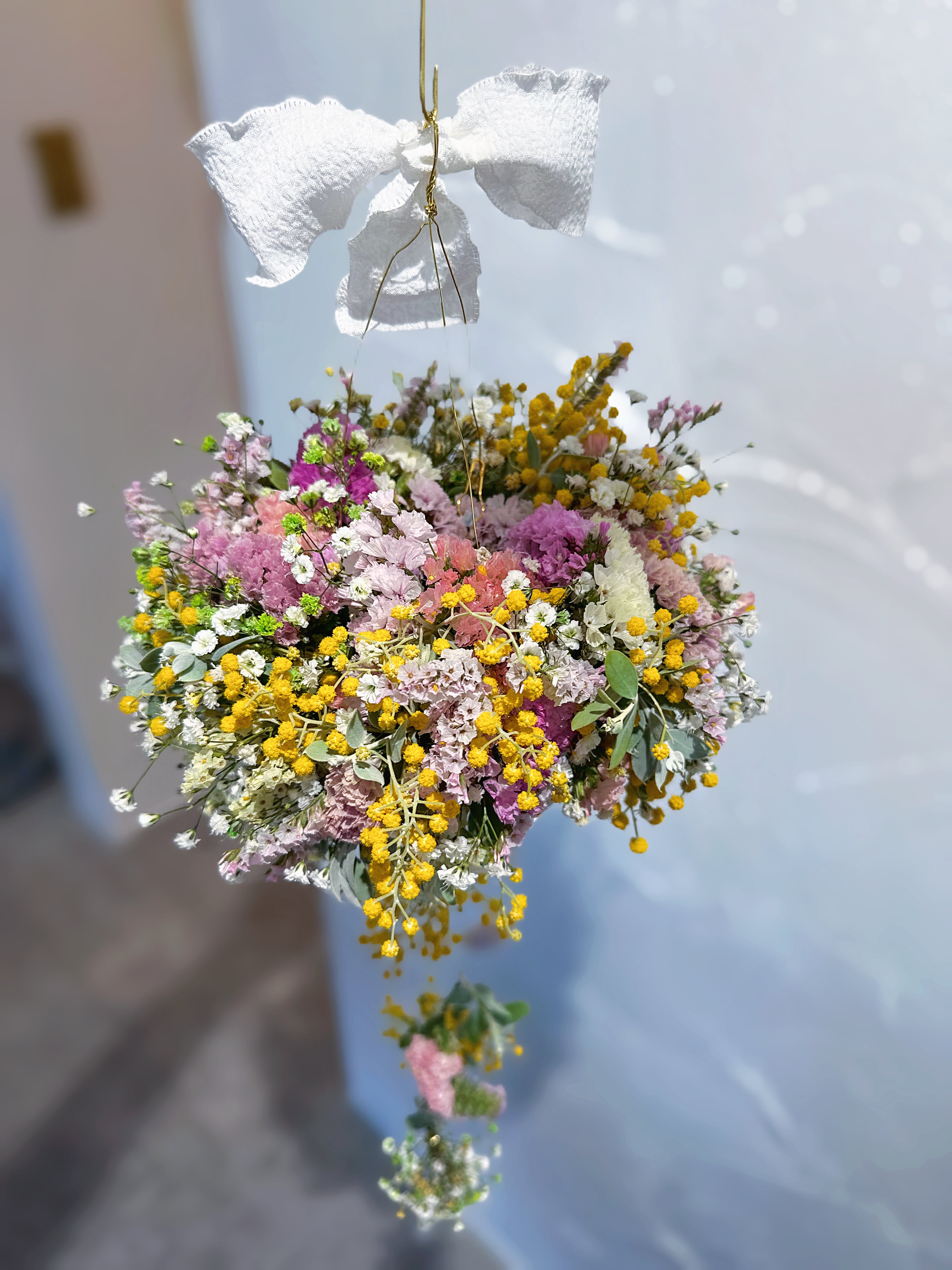 飾りながら、少しずつドライになっていくお花の表情の変化も楽しんでいただけたら嬉しいです。