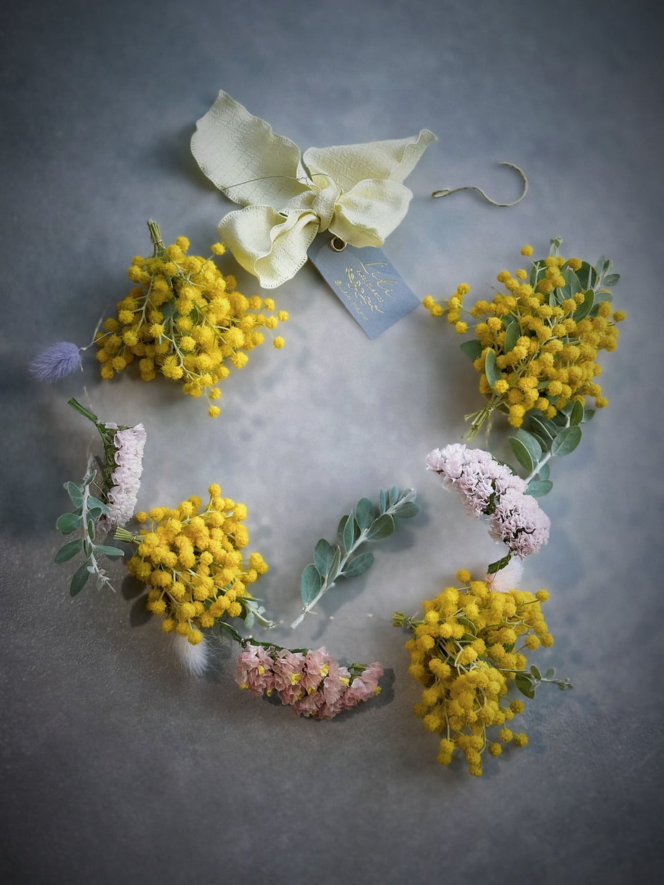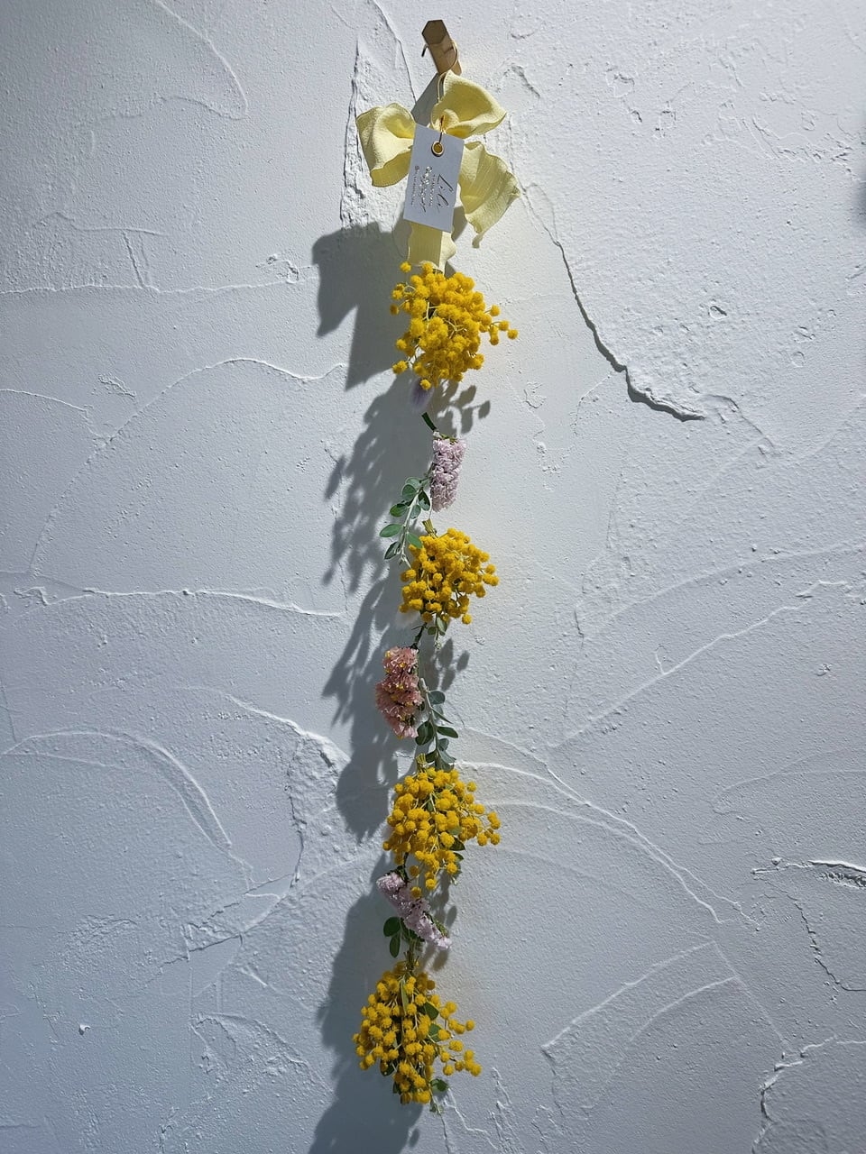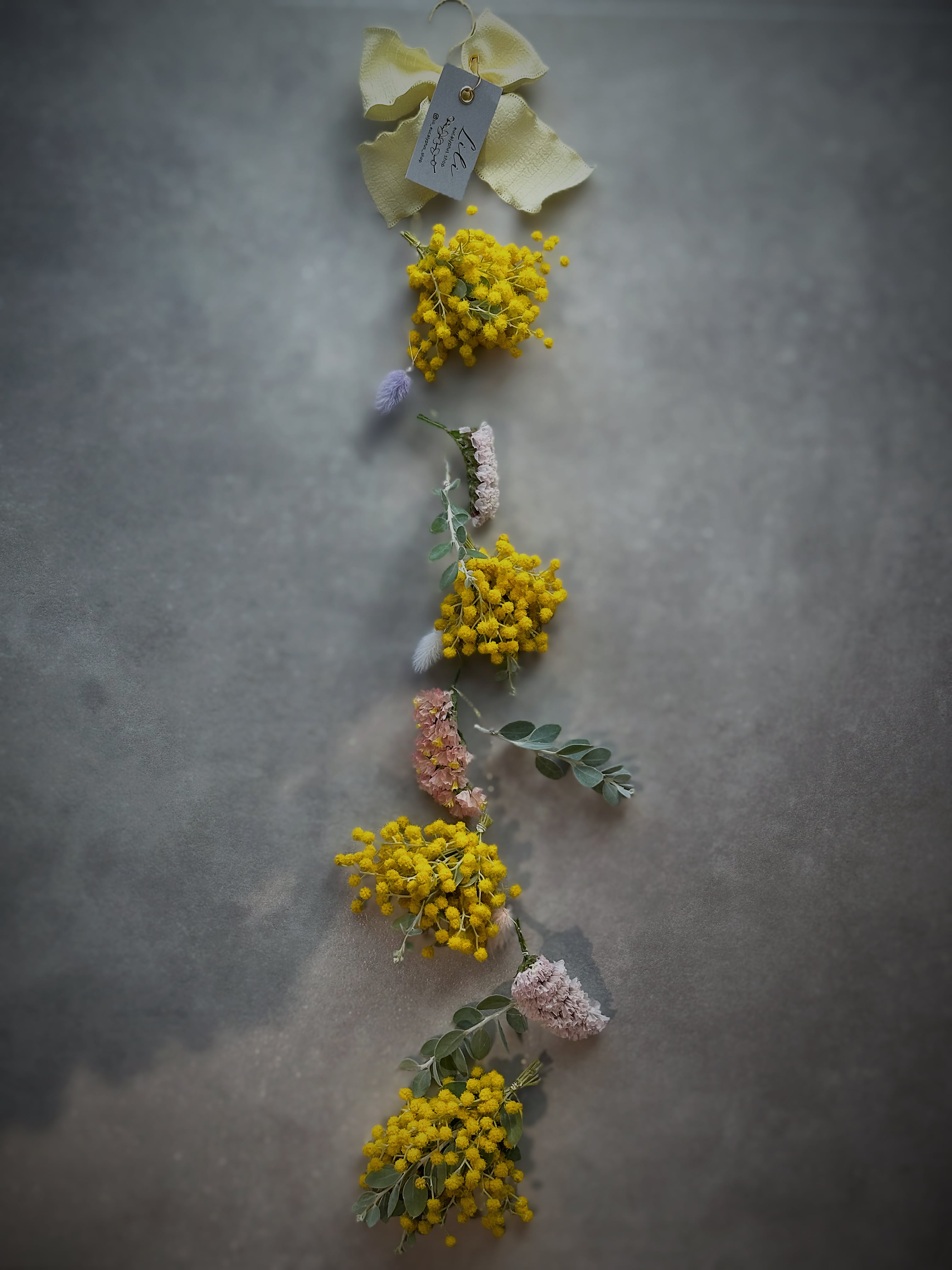 ミモザとニュアンスチースが可愛いフラワーモビールです♡