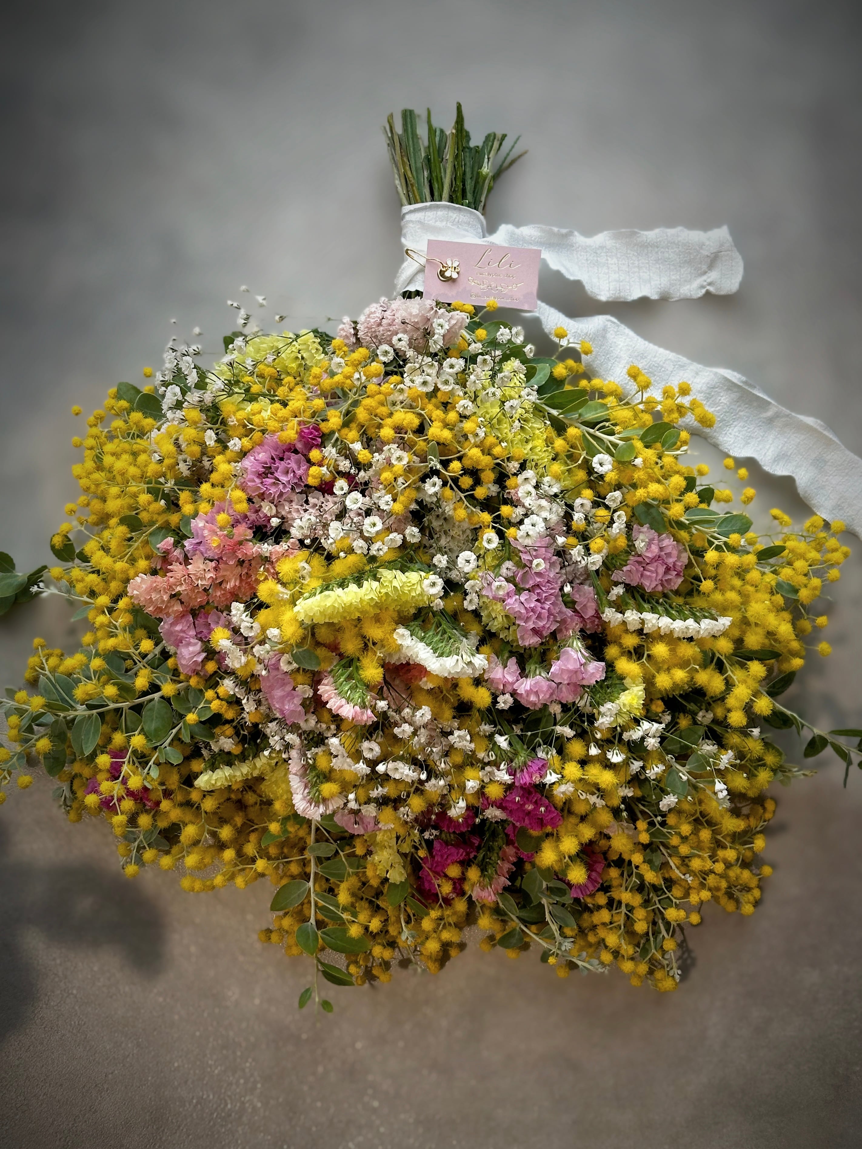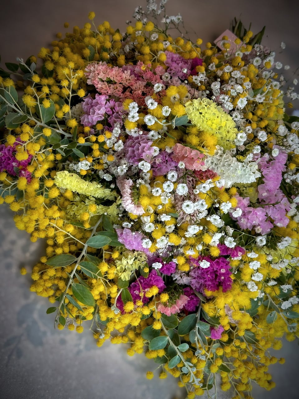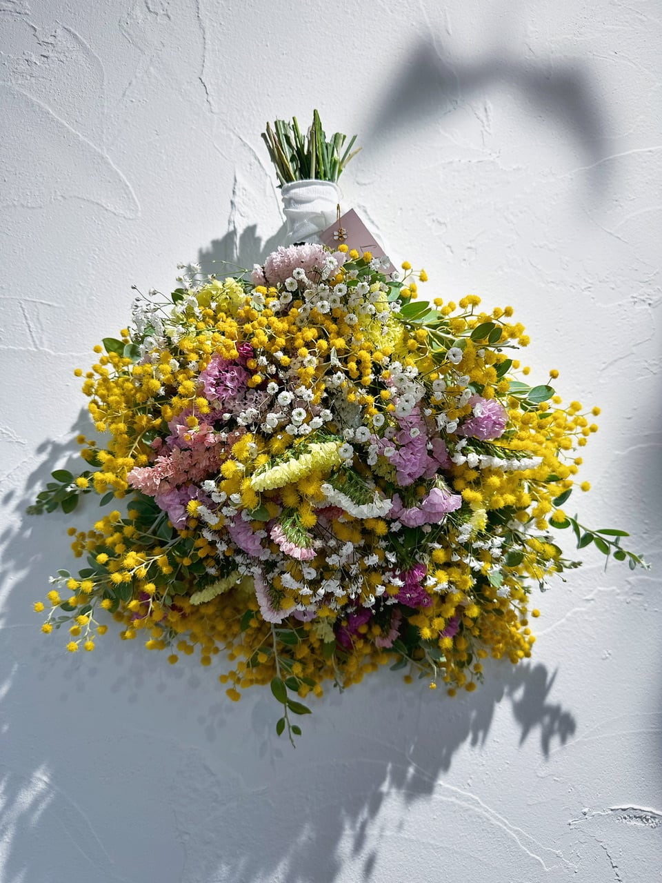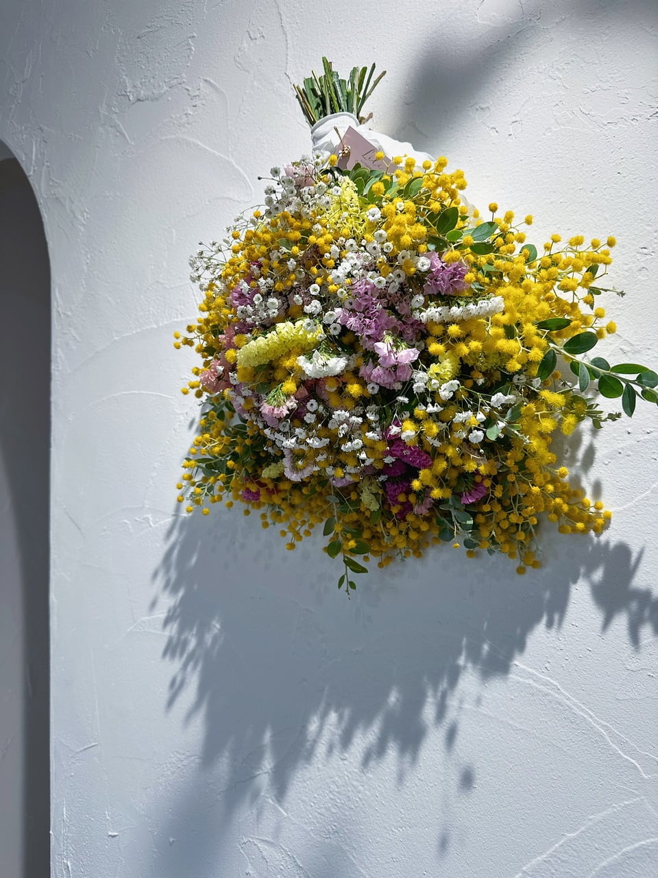 お花の絨毯のように、パールアカシアを贅沢にたっぷり使用したスワッグです。