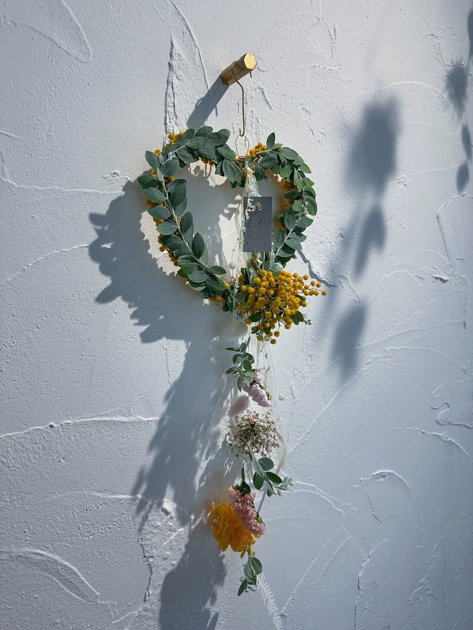リースを写真のように単体で飾ったり、リボンを付けたり、フラワーモビールを重ねて飾ったりと、その日の気分や空間に合わせてお好きな飾り方で楽しんで頂けたらなと思います♡