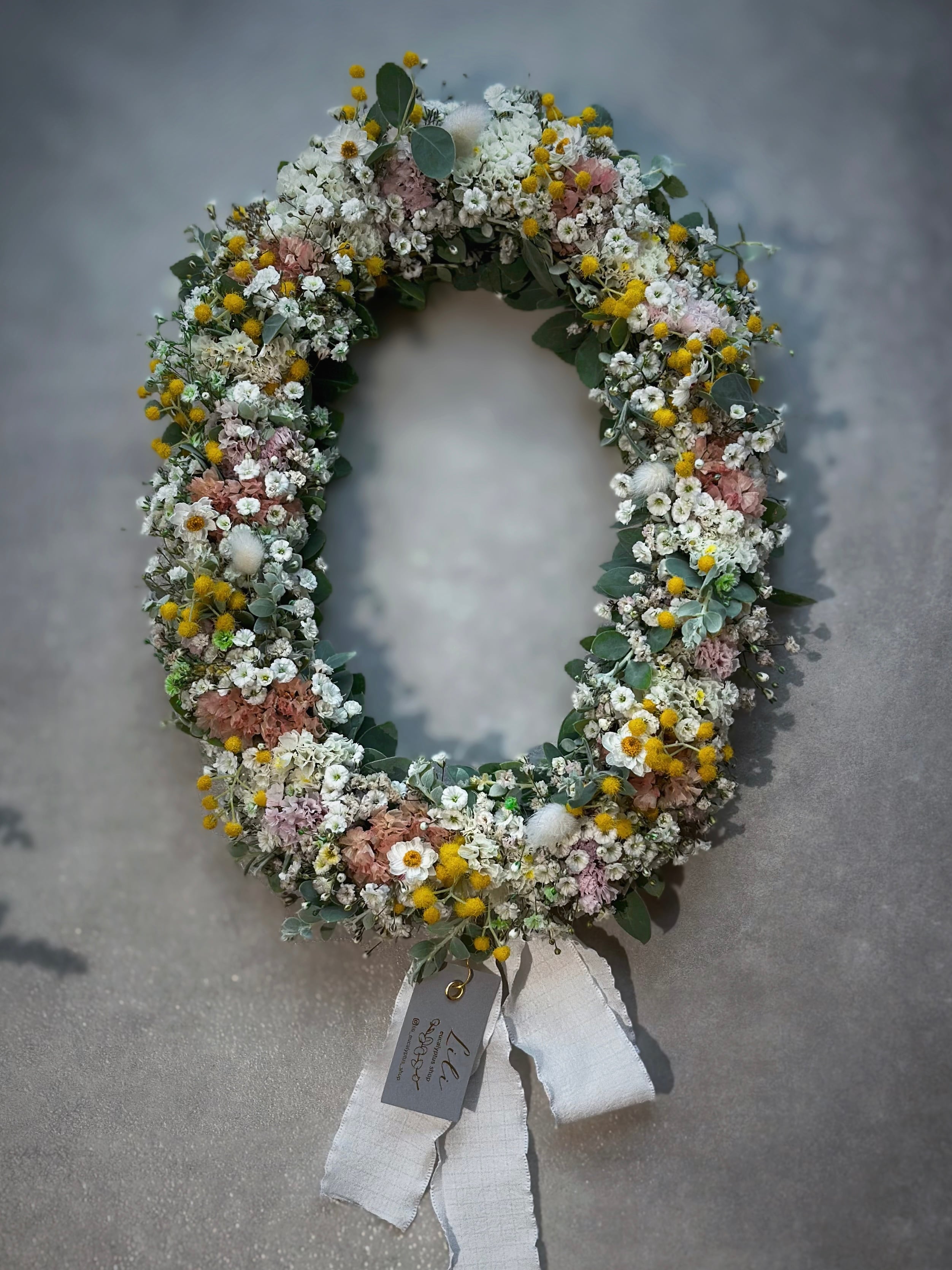 ※こちらは専用リクエストページになります。 ✔オーバルリース (大きめ、縦33cm前後) 優しい色合いでお任せ