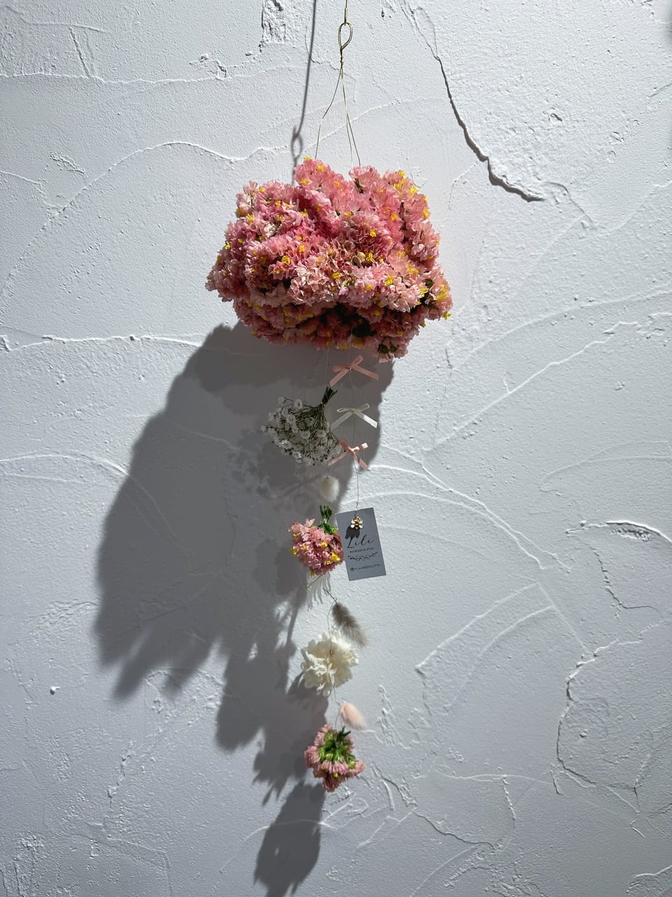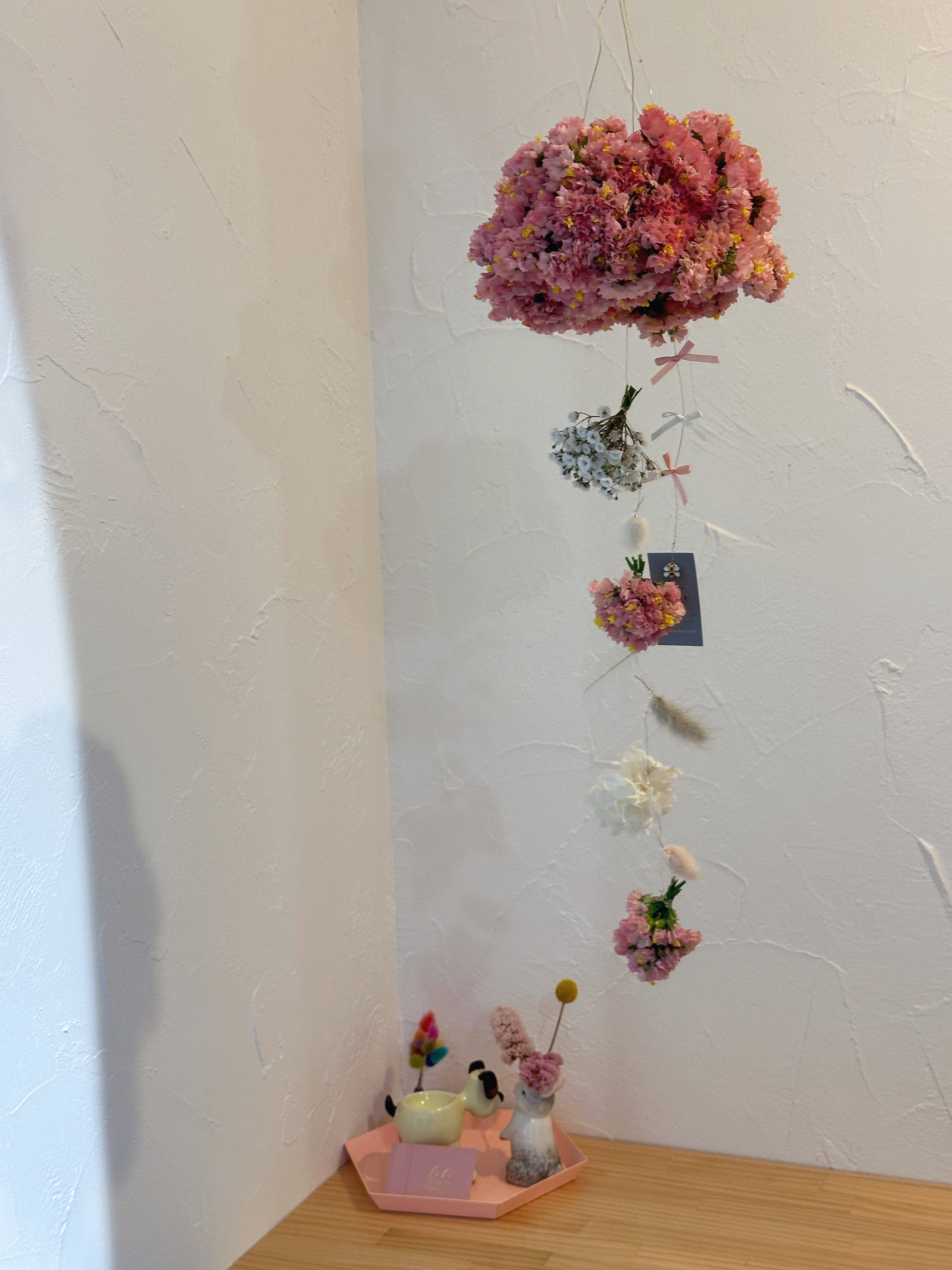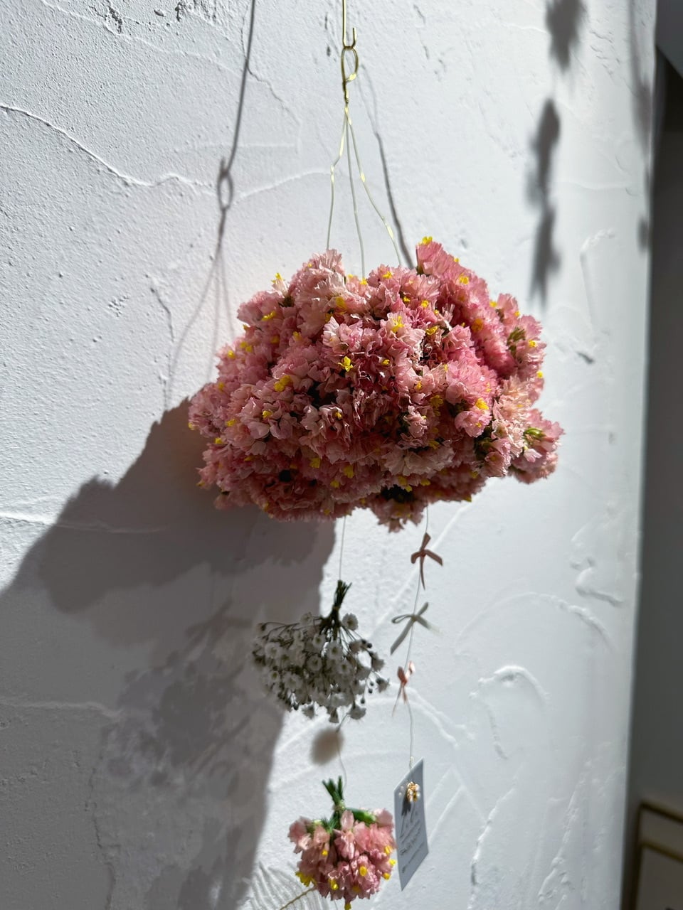 ゆらゆら揺れるフラワーモビールに、真鍮フック付きでそのまま飾っていただけます