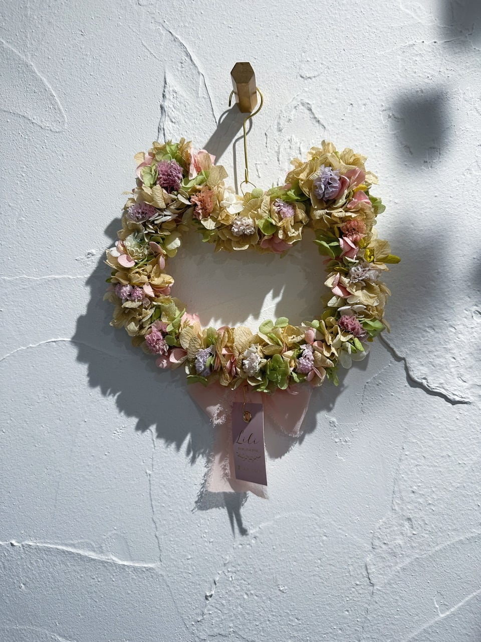 猫ちゃんの形がとっても可愛いリース♡プリザーブドフラワーをオリジナルで配合し、アンティークカラーに仕上げました プリザーブドフラワーは色持ちが良く、2〜3年と長く楽しんでいただけるのも魅力です♡ 裏面にもお花をあしらっているので、フライングリースとして飾ることもできます ✔ フライング紫陽ニャンリース(約19×18cm)スターチス付き お気に入りの子を見つけていただけたら嬉しいです