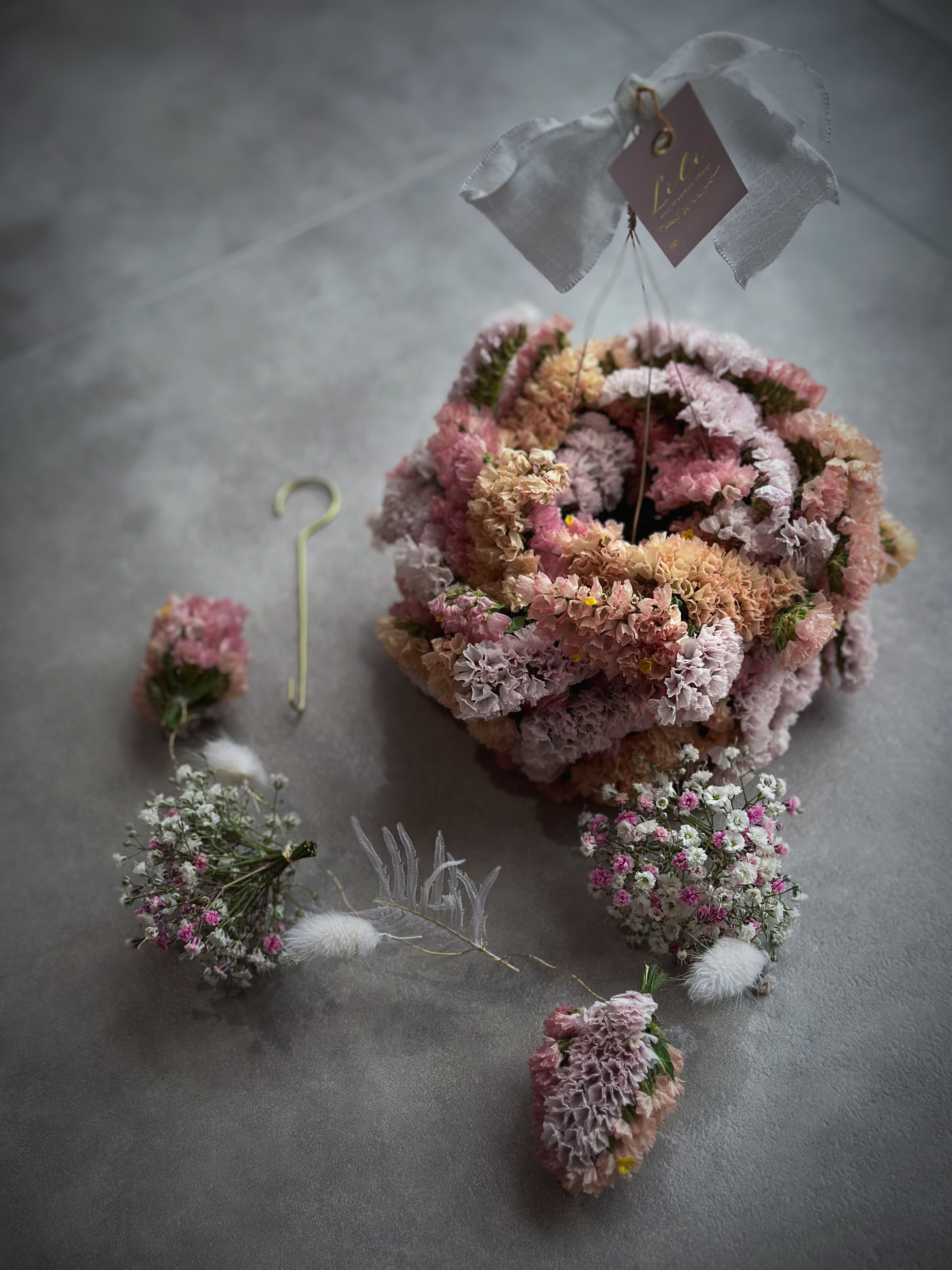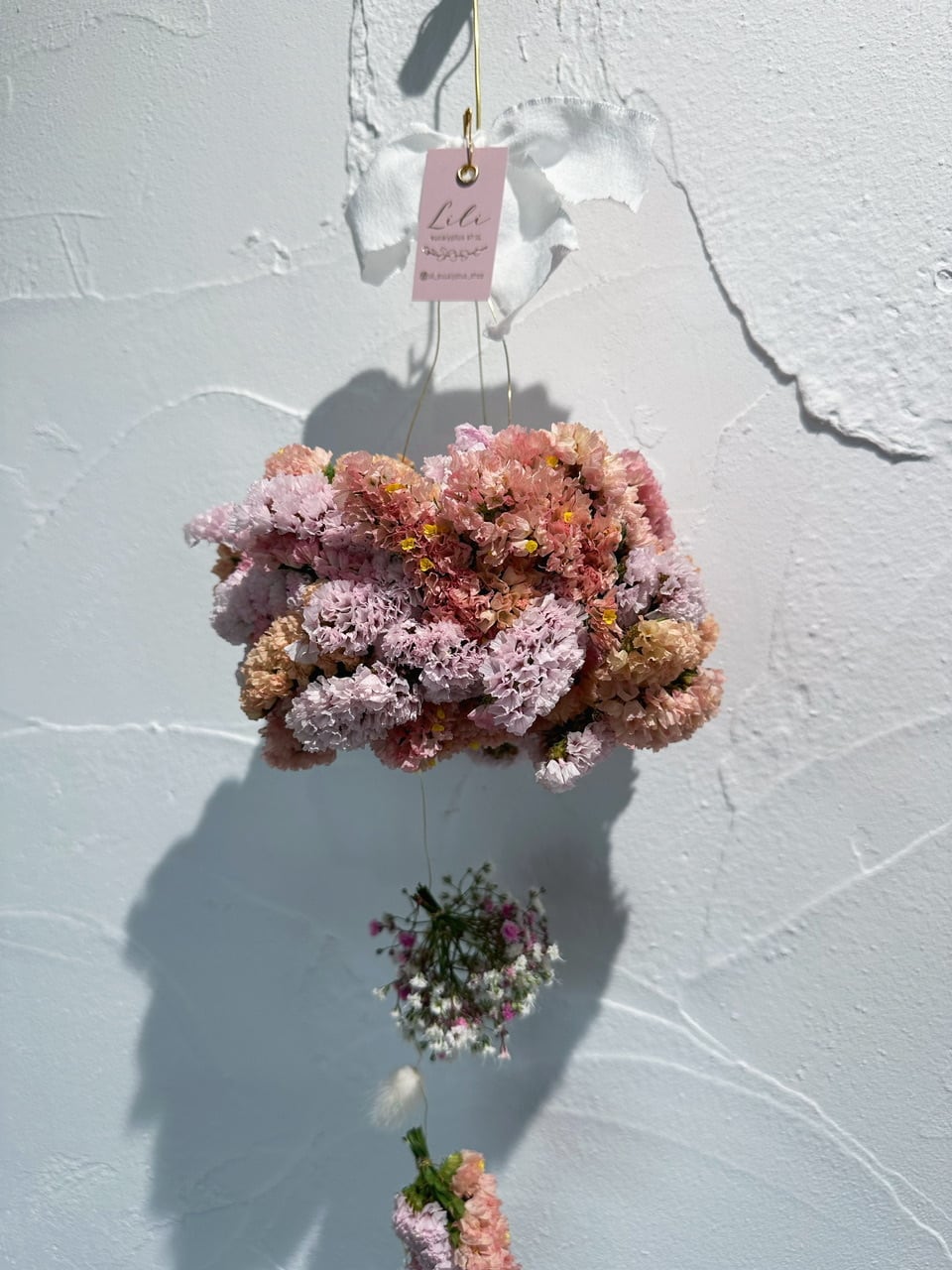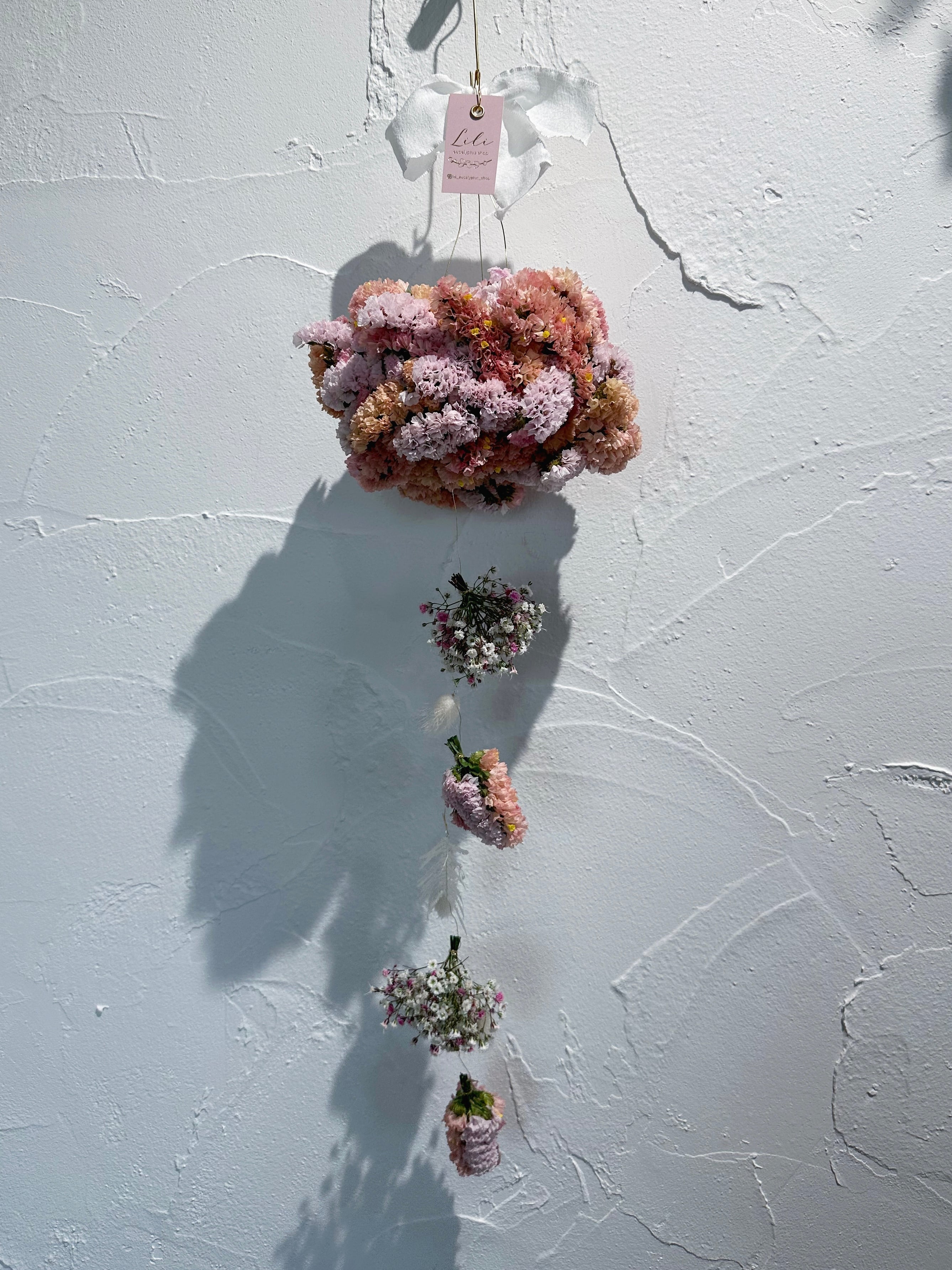ゆらゆら揺れるフラワーモビールに、真鍮フック付きでそのまま飾っていただけます♡