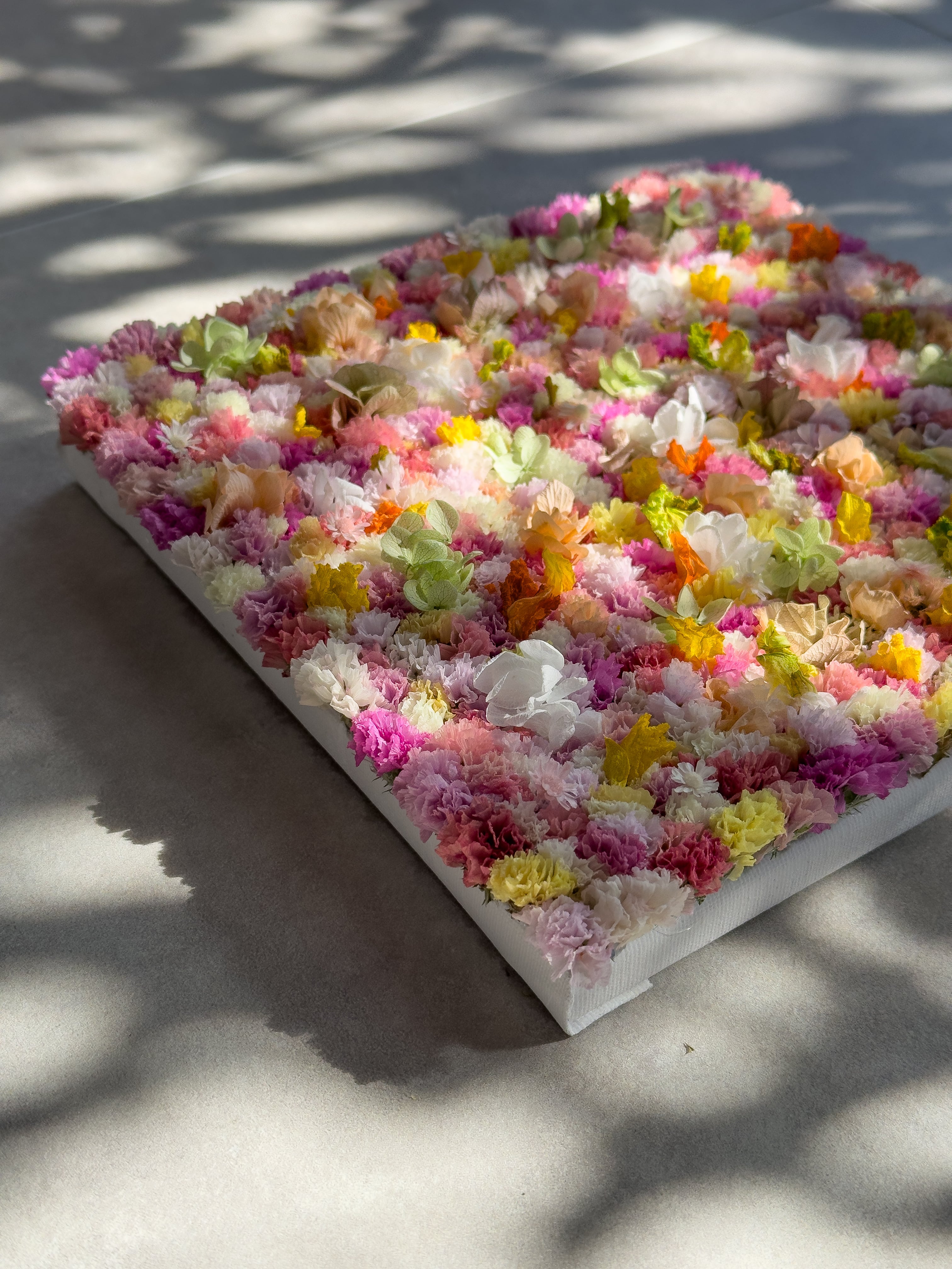 花の絨毯を壁に掛けるみたいなイメージで作りたくて♡アートを飾るように楽しんで頂けたら嬉しいです♡